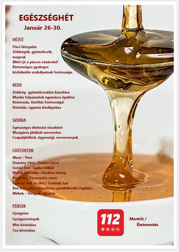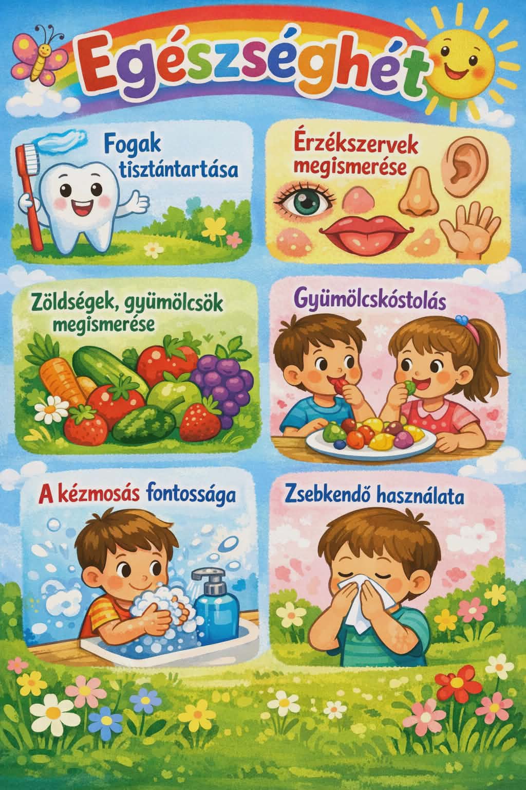 Óvodánkban kiemelten fontosnak tartjuk a gyermekek testi és lelki egészségének megőrzését, ezért Egészség Hetet szervezünk, melynek során játékos, élményalapú tevékenységeken keresztül ismerkedhetnek meg az egészséges életmód alapjaival.