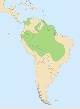 Elterjedési területe Panamától Észak-Argentínáig nyúlik. A folyómenti erdőségeket, mocsaras és nyíltabb vidékeket egyaránt kedveli. Táplálékának zömét vastag héjú termések, magvak, gyümölcsök, hajtások és levelek alkotják. Bár alapvetően párban él, a természetben gyakran csapatostul repül, és a gazdagabb táplálkozó helyeknél több tucat állat is összegyűlhet.