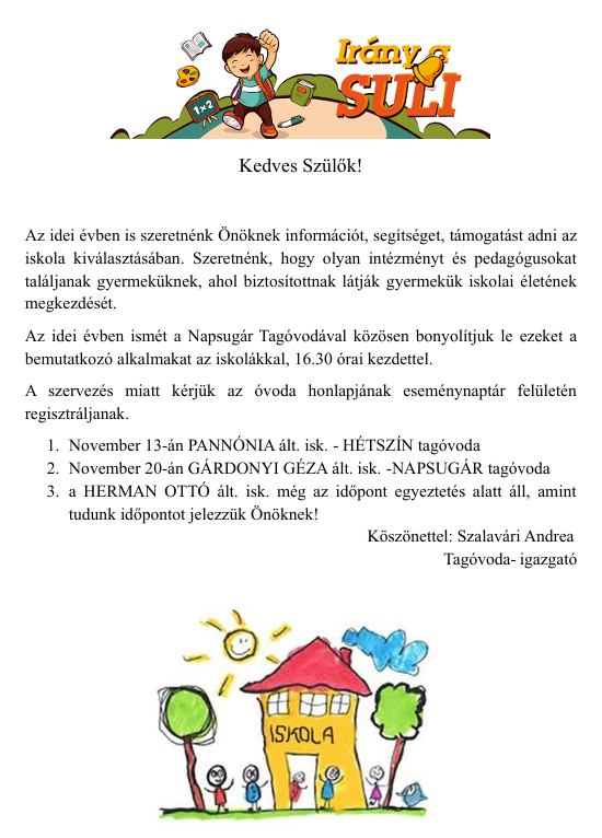 Iskolába megyek ÚJABB TEMATIKUS iskolaérettség Iskola bemutatkozó (1) Iskolaelőkészítő foglalkozások: Pannónia Általános Iskola Herman Ottó Általános Iskola Gárdonyi Géza Általános Iskola