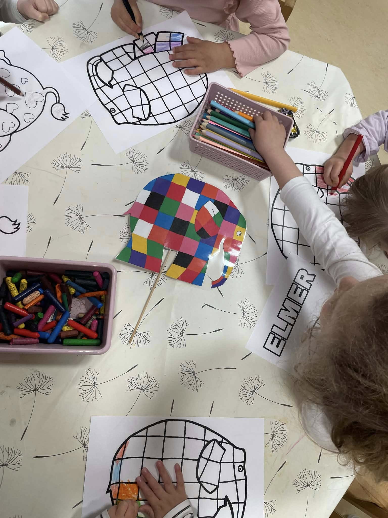 A gyerekek “Elmer, a kockás elefánt” történetén keresztül ismerkedtek meg azzal, hogy mindannyian különbözőek vagyunk, és éppen ettől vagyunk különlegesek. Sokat beszélgettünk arról, ki miben ügyes, miben egyedi, és közösen fedeztük fel, hogy a sokszínűség érték. A Zöld csoportban a kulturális sokszínűség is hangsúlyt kapott, gazdagítva a témát új nézőpontokkal.