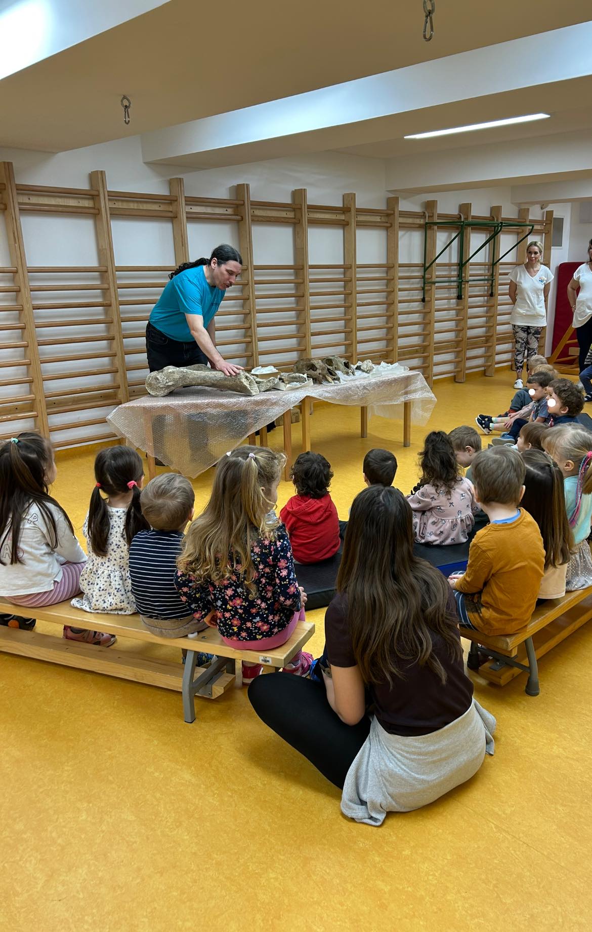 A gyerekek nagy érdeklődéssel figyelték a bemutatott tárgyakat, kérdeztek, tapintottak, vizsgálódtak – igazi kis felfedezőkké váltak. A foglalkozás vezetője izgalmas, életkoruknak megfelelő történeteket és érdekességeket mesélt az ősi állatokról, arról, hogyan éltek, miben különböztek a mai állatoktól, és hogyan kerültek elő ezek a csontok.