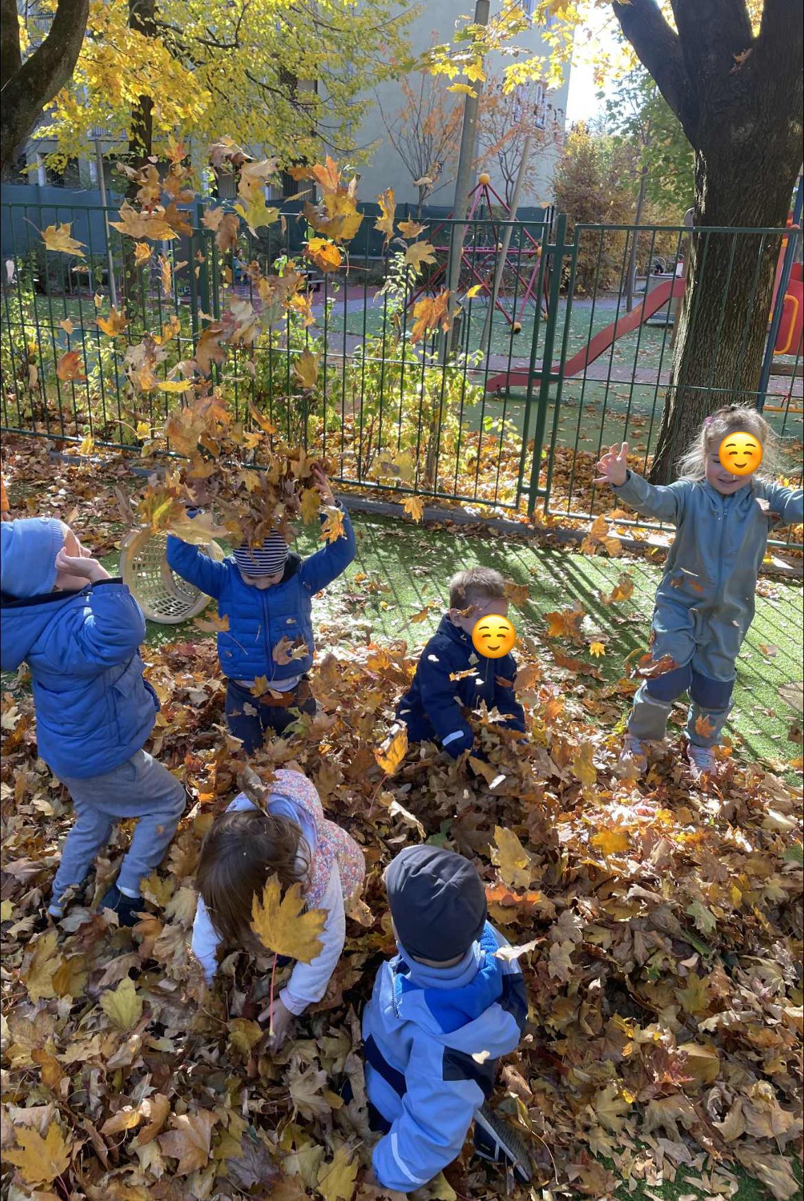 Rengeteget játszottunk a napsütésben: zörgő leveleket dobáltunk, falevélkupacokba ugráltunk, sétáltunk, felfedeztünk. De az esős, kuckózós napokat is kihasználtuk: kreatívabbnál kreatívabb programok, barkácsolás, festés, kísérletezés, közös mesék és játékok színesítették a hétköznapokat.