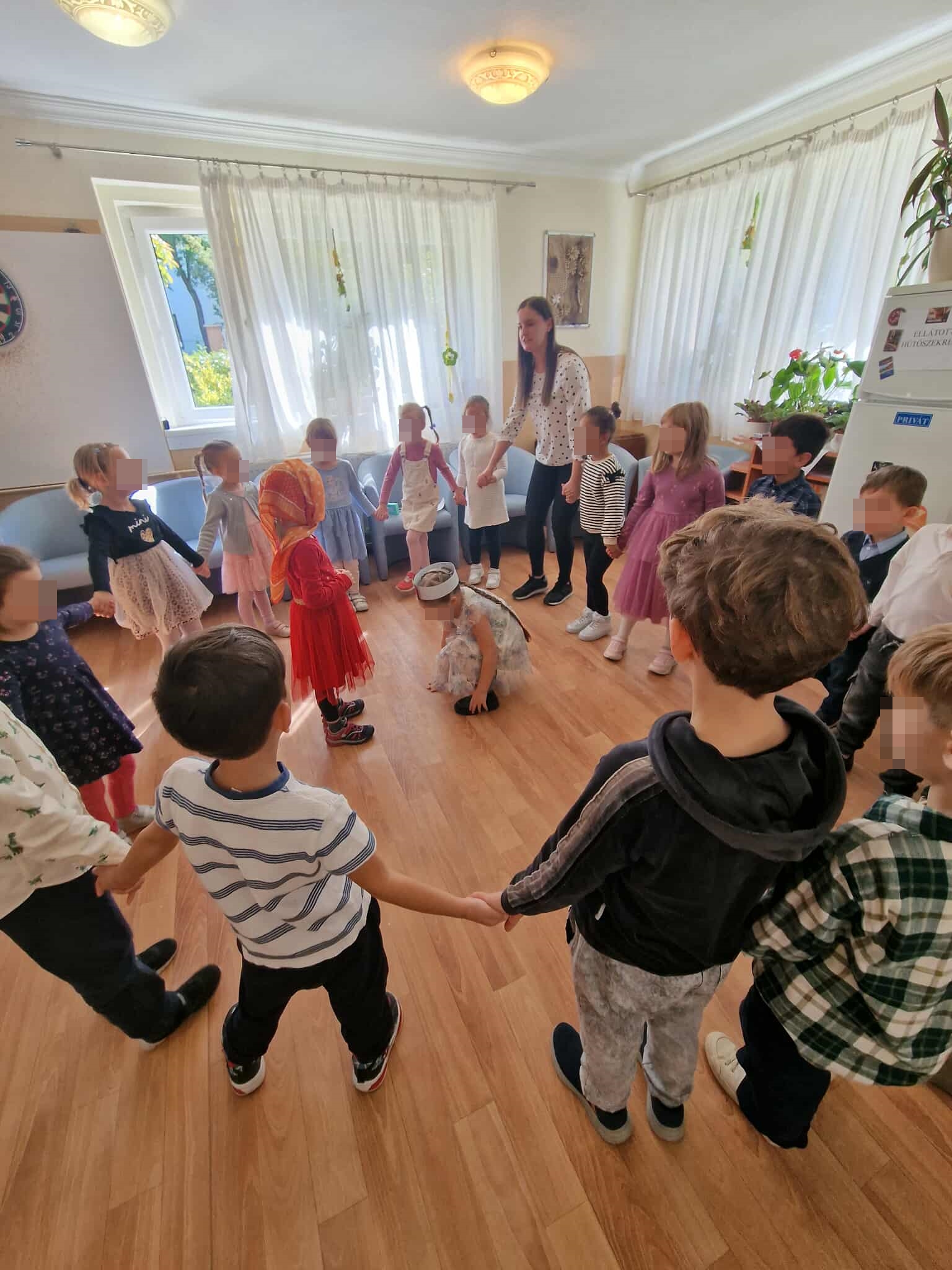 Népmese napja – 2025: A Népmese Világnapját idén egy különleges kalanddal ünnepeltük az óvodában! Amíg a gyerekek aludtak 😴, egy hatalmas sárkány költözött be az óvodába! 😲 Hogy legyőzzük, minden Pöttyös családnak egy mesét kellett haza vinnie, és közösen elolvasni, mert csak a mesék varázsereje gyengíthette meg a sárkányt! 🏠❤️ A sok-sok elmondott mese erejével a sárkány végül elfáradt, és visszarepült a várába. 🏰 Köszönjük a családoknak, hogy együtt segítettetek megmenteni az óvodát! „A mese ott kezdődik, ahol a valóság véget ér…”