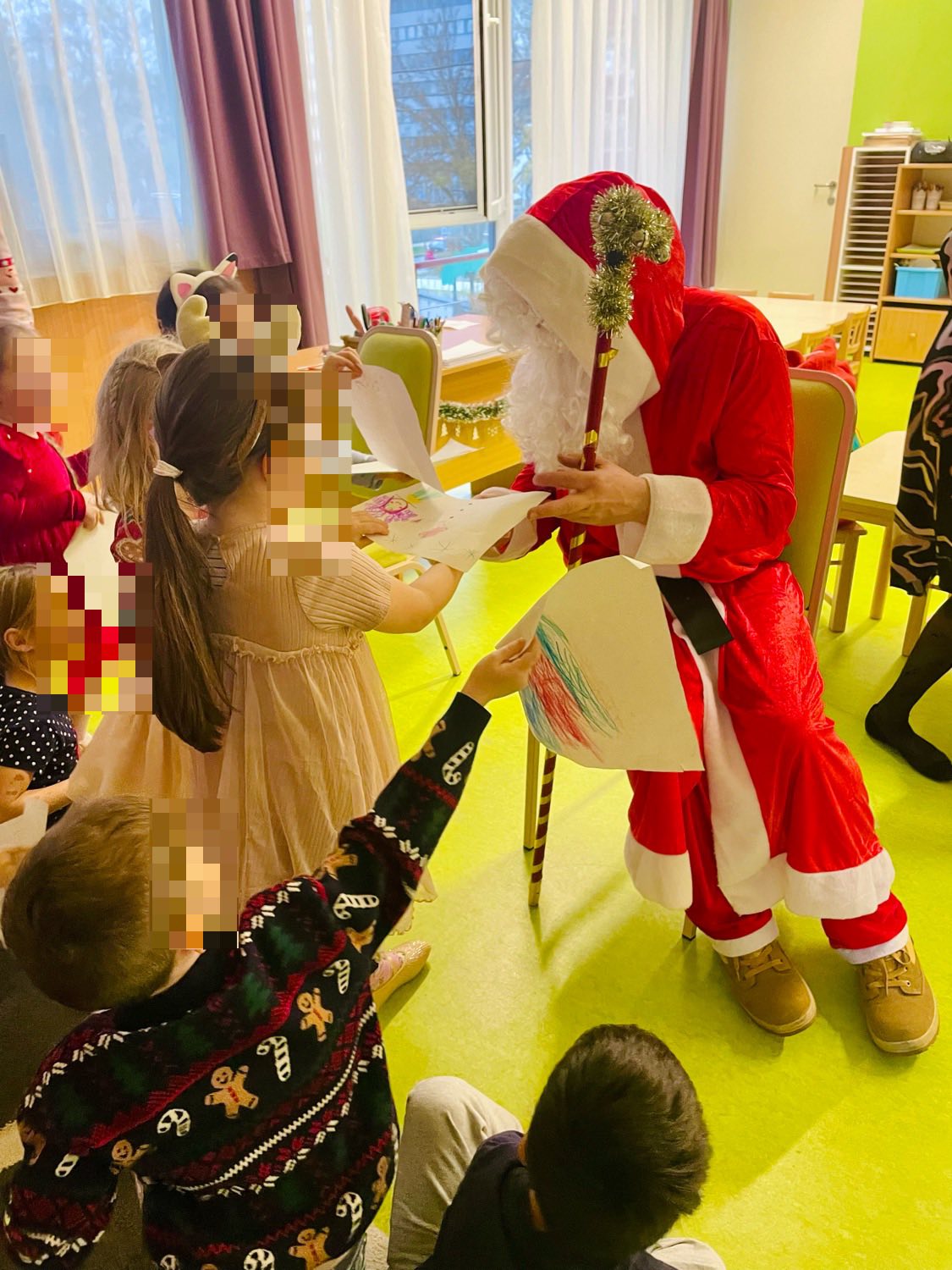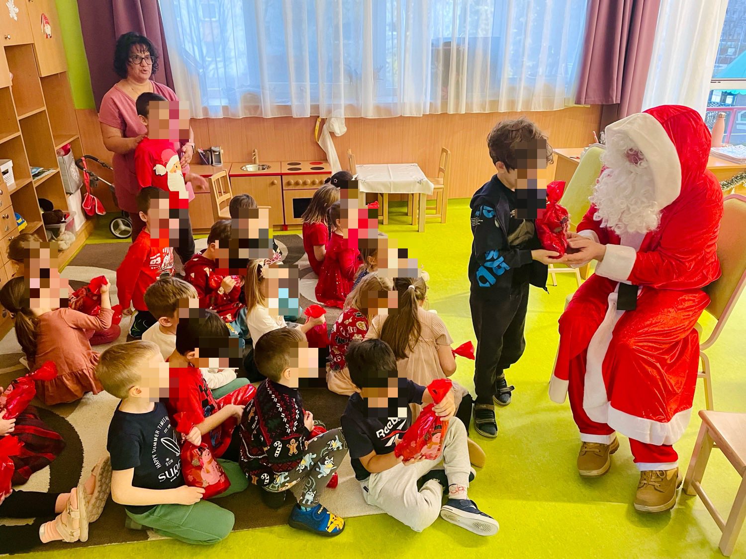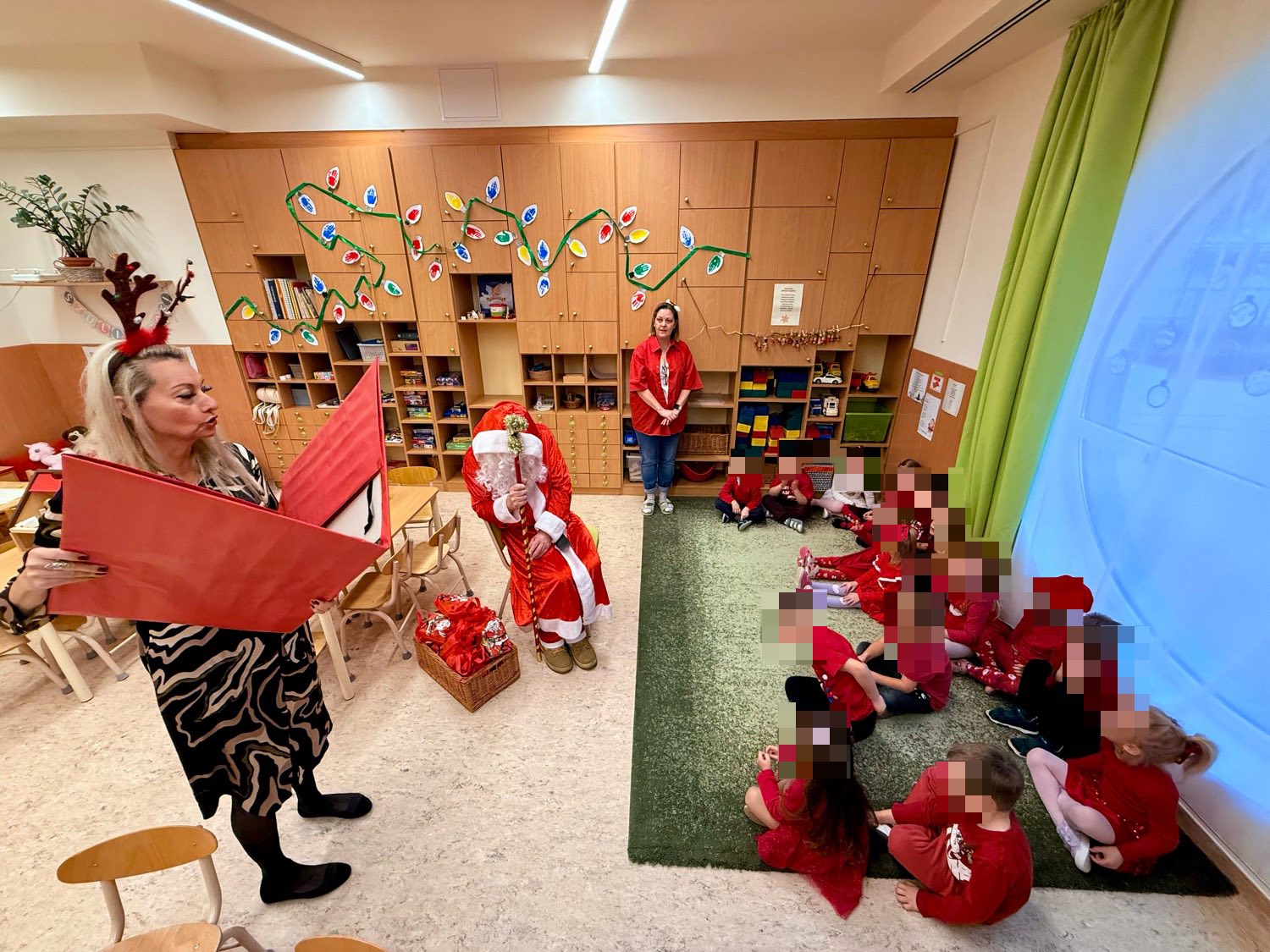 Mikulás 2025 – A Mikulás minden csoportba ellátogatott, és kíváncsi örömmel hallgatta a gyerekek énekeit, verseit. Minden kérdésre mosolyogva válaszolt, és természetesen nem érkezett üres puttonnyal — minden kisgyermeknek hozott egy apró meglepetést. A gyerekek csillogó szemmel fogadták, mi pedig együtt örültünk annak a meghitt, bensőséges ünnepi hangulatnak, amit magával hozott. ✨