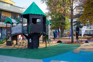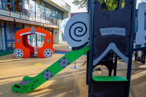 Örökös Zöld Óvoda, Madárbarát Óvoda, Állatbarát Óvoda, Családbarát Óvoda, Integráló Óvoda – ezekkel a címekkel is büszkélkedik a Jász utcai Pöttyös Tagóvodánk, amely idén előbb teljes energetikai korszerűsítésen esett át, mostanára pedig felújítottuk az udvarát is. Az 1.400 négyzetméteres játszókertben egy lombház lett a legnagyobb játszóeszköz, de van benne például homokozó, focipálya és kismotorpálya, továbbá egy nagy faölelő pad pihenéshez, mesehallgatáshoz. A fejlesztés megtervezésekor az vezetett bennünket, ami kerületi óvodáink jelmondata is: „Akkor jó a világ, ha jó benne gyereknek lenni.”
